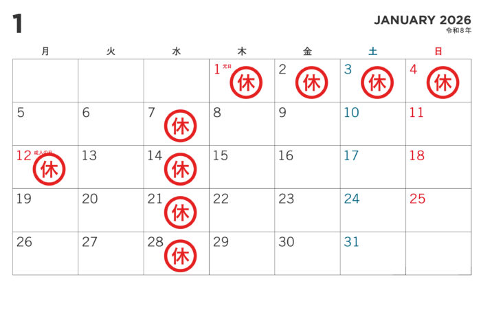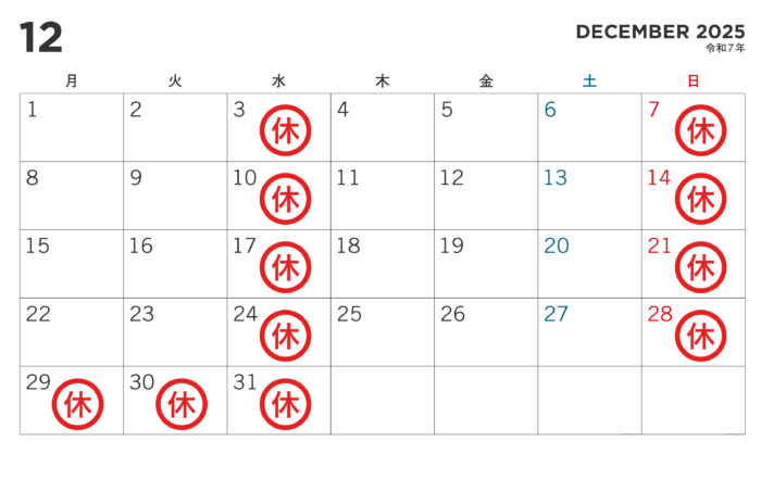 12月、1月の休診日のお知らせ
