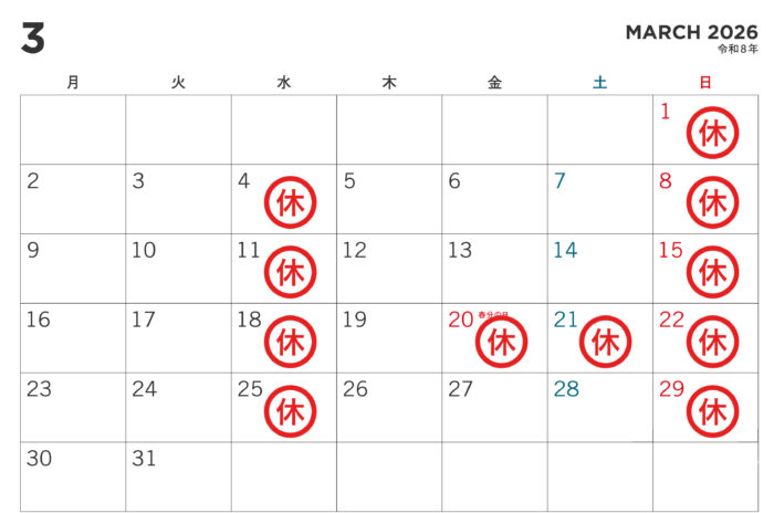 ※誠に勝手ながら、3月21日(土曜日)は臨時休業とさせていただきます。